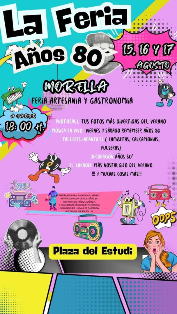Vive la Feria Remember Años 80 en el centro histórico de Morella del 15 al 17 de agosto. Música, talleres, artesanía y alimentación .