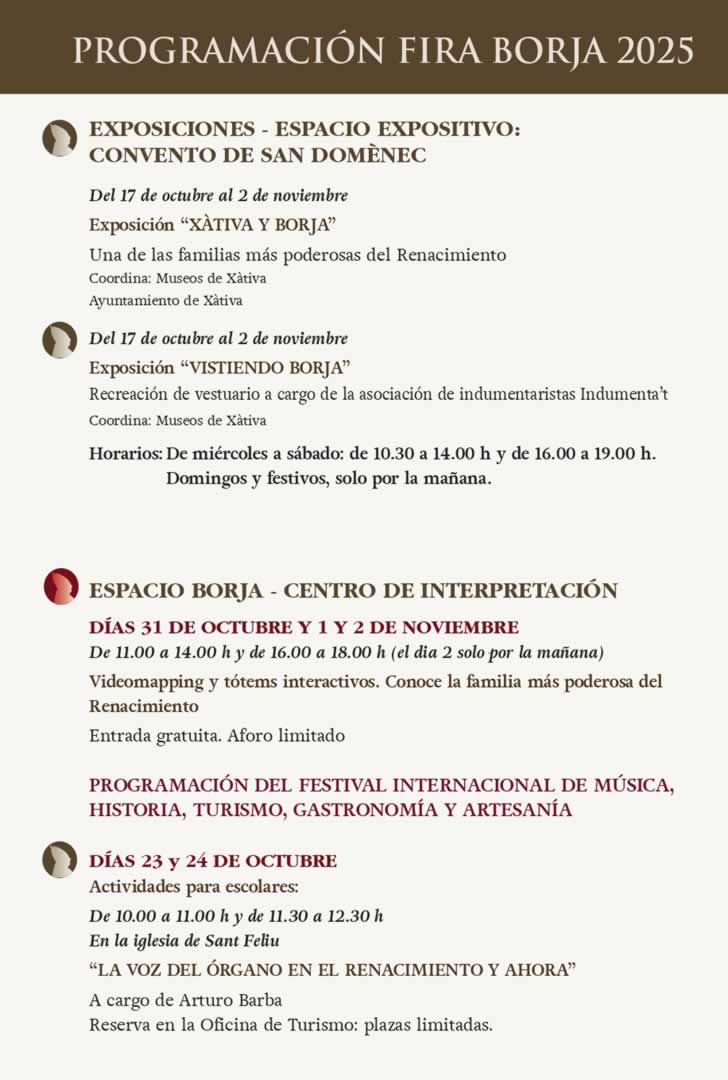 La Fira Borja se ha consolidado como una de las celebraciones culturales más destacadas de Xàtiva, promovida por el Ayuntamiento y con gran implicación de la ciudadanía.