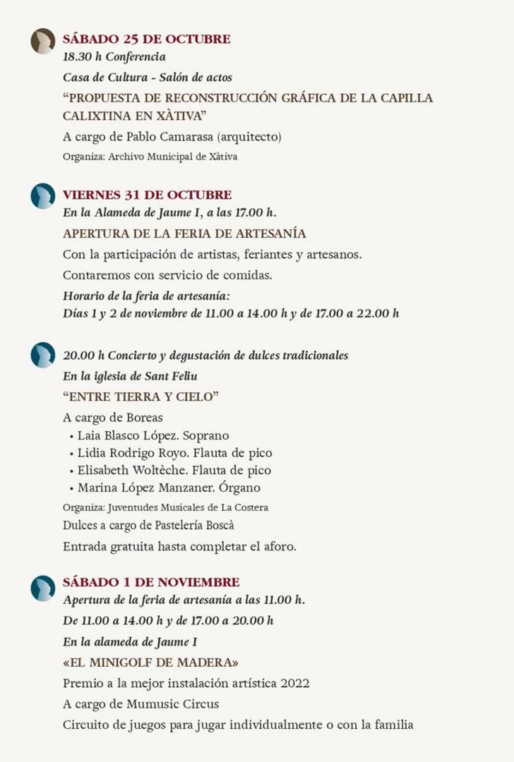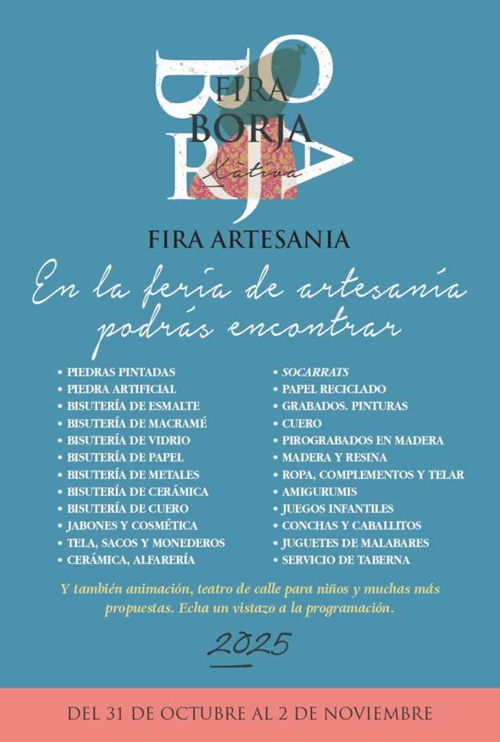 Del 31 de octubre al 2 de noviembre de 2025, la ciudad de Xàtiva (Valencia) acoge el esperado Mercado de Artesanía de la Fira Borja, un evento que llenará de color, música y creatividad el corazón del casco histórico.